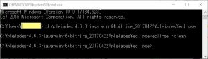 コマンドプロンプトで、eclipse.exeが存在する場所まで移動し、「eclipse -clean」コマンドを実行します。