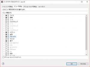 ウィンドウ > パースペクティブ > パースペクティブのカスタマイズ