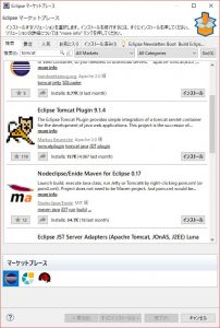 検索欄にて「tomcat」を検索すると、猫のマークで「Tomcat Plugin 9.1.4」というものがあるので、インストールを押せば完了です。