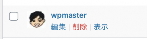 wpmaster以外のアカウントでログインしている場合は、こちらの画像のように「削除」が表示されると思いますので、削除を選択します。
