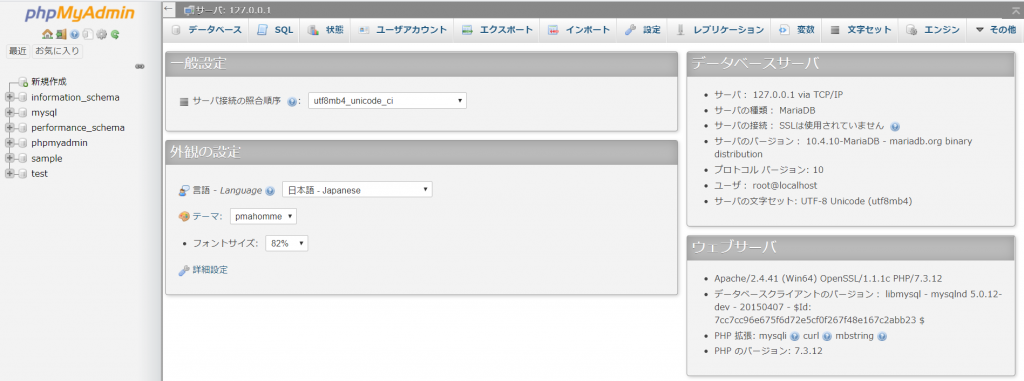 「sample」というデータベースを使用します。