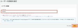 ユーザ名に自身のわかりやすい名前を入れ、「次へ」を押下します。