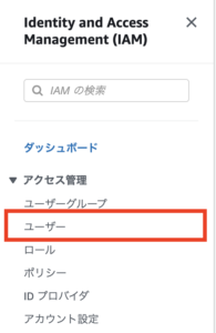 awsのマネジメントコンソールからiamにアクセスします。