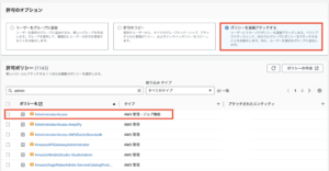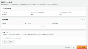 「ポリシーを直接アタッチする」を選択し、「Administrator Access」にチェックを入れ、「作成」を押下します。
