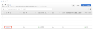 ユーザ一覧から、先ほど作成したユーザを選択します。