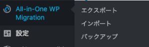 プラグインをインストールし、有効化すると、管理画面メニューに「All-in-One WP Migration」という項目が追加されます。