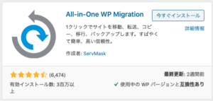 まず、移行前のWordPressサイトに「All-in-One WP Migration」プラグインを導入します。